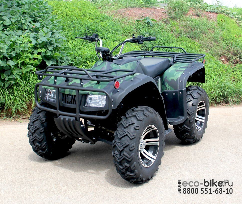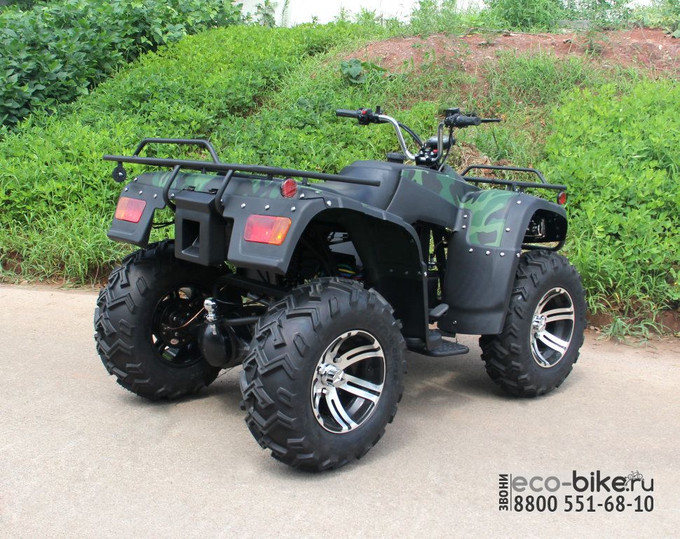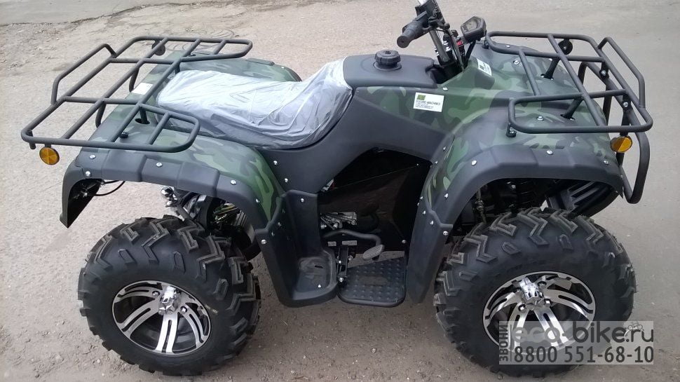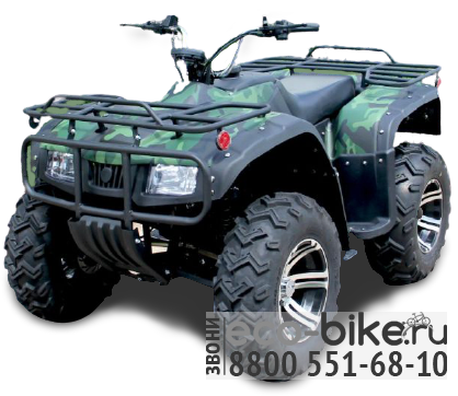 - Привод 4х2: простой и надёжный, позволяющий без коробки передач, разгонять квадроцикл до 55 км/ч и тянуть прицеп до 1000 кг.
