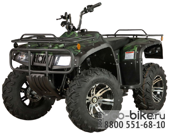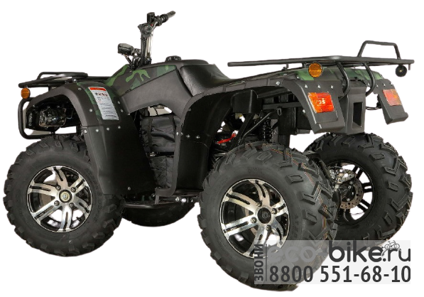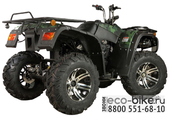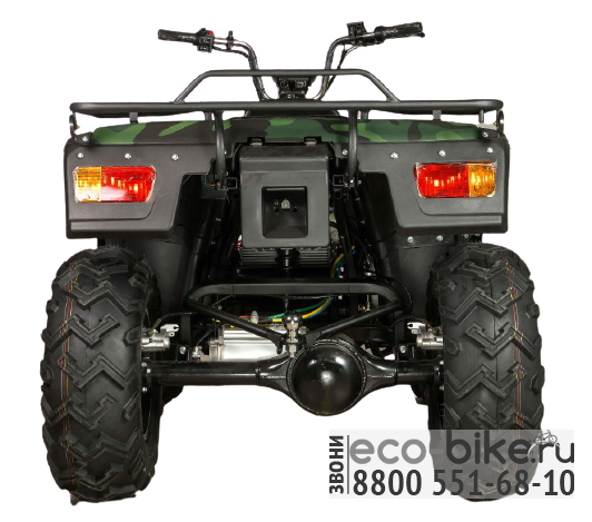 - Привод 4х2: простой и надёжный, позволяющий без коробки передач, разгонять квадроцикл до 60 км/ч и тянуть прицеп до 2000 кг.(сравните с бензиновыми квадроциклами!).